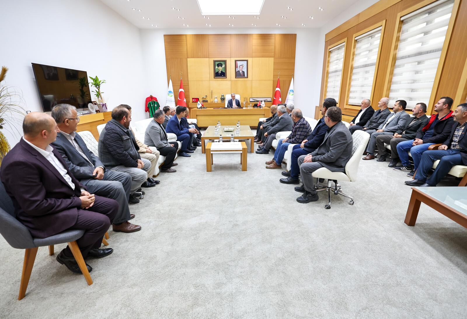 Sakarya Büyükşehir Belediye Başkanı Yusuf Alemdar, AK Parti Kaynarca İlçe Başkanı Muhammet Ali Pulat, İlçe Kadın Kolları Başkanı Nurcan Akkurt, Gençlik Kolları Başkanı Emirhan Sözer, yönetim kurulu üyeleri, meclis üyeleri ve mahalle muhtarlarını ağırladı.Heyet, Kaynarca’ya gerçekleştirilen hizmetler dolayısıyla Başkan Alemdar’a teşekkür etti.